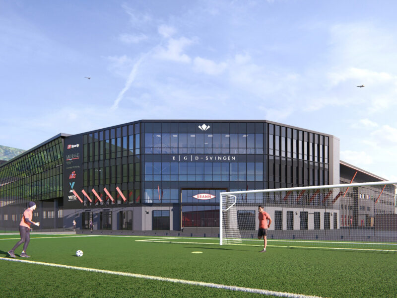 EGD-svingen markerer den endelige fullføringen av Brann Stadion og binder sammen nord- og vesttribunen i et moderne nybygg. Prosjektet er utformet som et kraftsenter for toppidrett og utdanning, der SK Brann deler lokaler med aktører som Olympiatoppen, NTG og Høgskulen på Vestlandet.